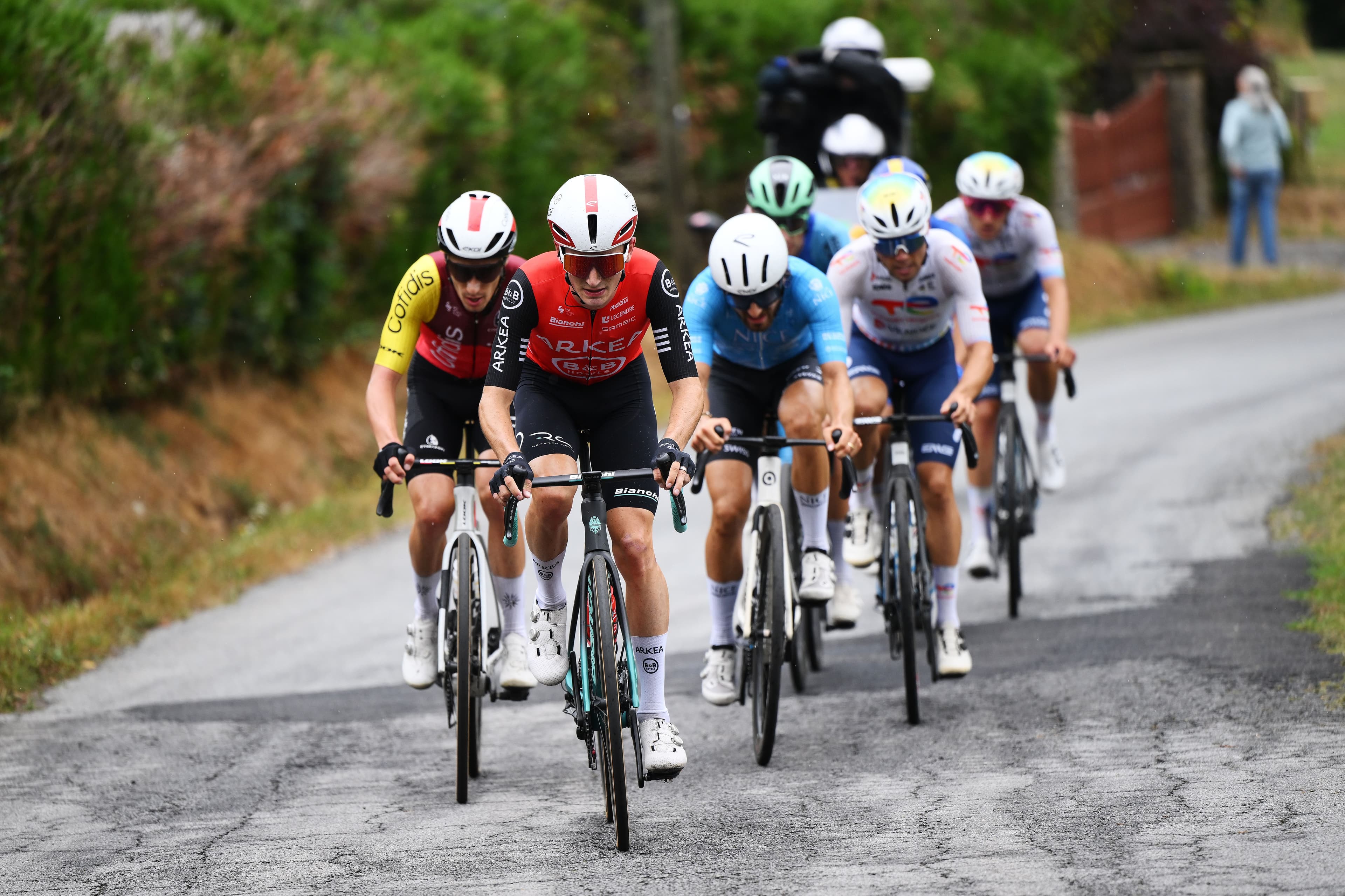Ewen Costiou 2ème à La Courtine, Simon Guglielmi devant et qui prend des bonifications, bonne entame du Tour du Limousin pour les rouge et noir au maillot « Excalibur »